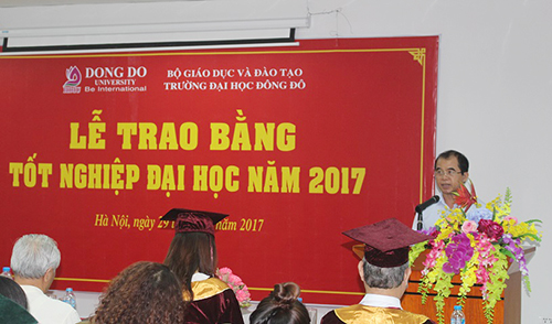 Phát biểu tại Lễ tốt nghiệp, TS. Dương Văn Hòa - Hiệu trưởng trường Đại học Đông Đô đã nhiệt liệt chúc mừng thành công của các tân Cử nhân. Đồng thời, Tiến sĩ cũng đề nghị các tân Cử nhân biểu lộ lòng biết ơn chân thành sâu sắc đối với các thầy cô giáo và các cán bộ, công nhân viên Nhà trường - những người hàng ngày đã khắc phục không ít khó khăn về nhiều mặt của bản thân và gia đình để trực tiếp làm nhiệm vụ đào tạo hoặc phục vụ cho công tác đào tạo. Đồng thời thầy cũng bày tỏ nhà trường rất vui mừng được đón các bạn trở lại học tập ở bậc học cao hơn để trở thành những Thạc sĩ, Tiến sĩ.