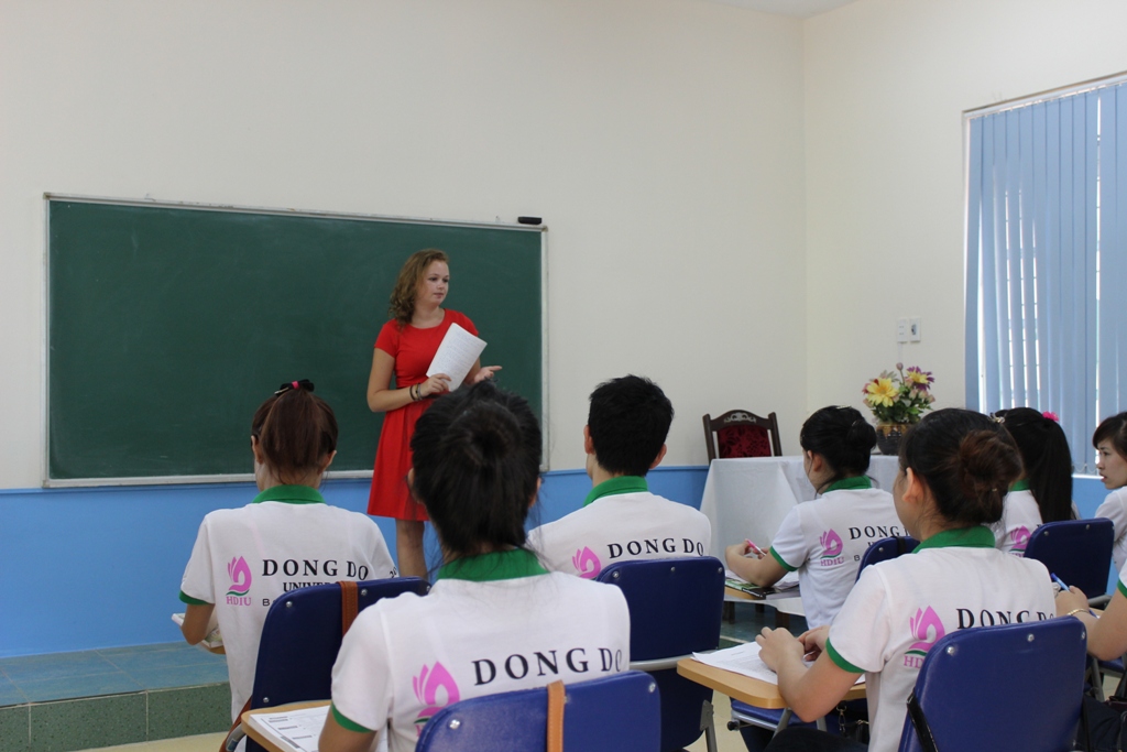 Với các bạn sinh viên, có lẽ còn nhiều bỡ ngỡ, lúng túng vì đây là lần đầu tiên các bạn được nghe tiếng Anh bản địa, phải nói rất nhiều để cô giáo hiểu. Tuy nhiên, không phải vì thế mà các bạn rụt rè hay xấu hổ, các bạn sinh viên đã nhân cơ hội này để tập luyện nhiều hơn, cố gắng nói nhiều hơn để được cô sửa chữa cho phần nói.
