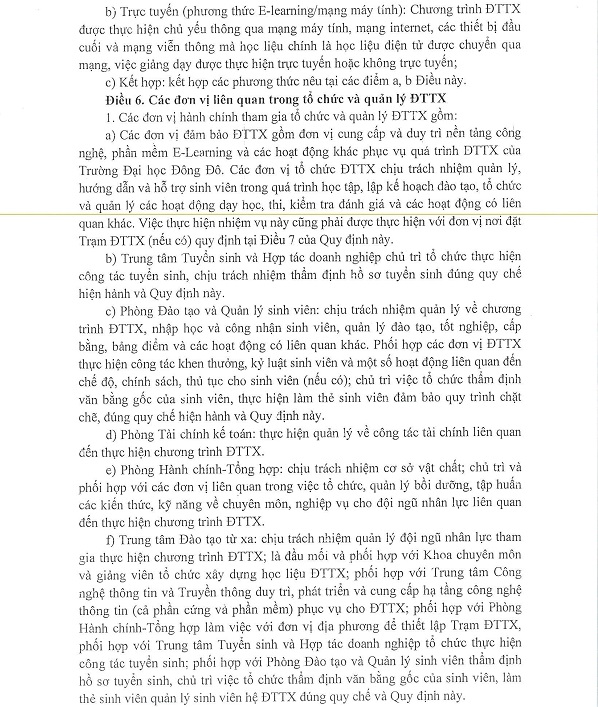 Quy định đào tạo từ xa trình độ đại học tại Trường Đại học Đông Đô
