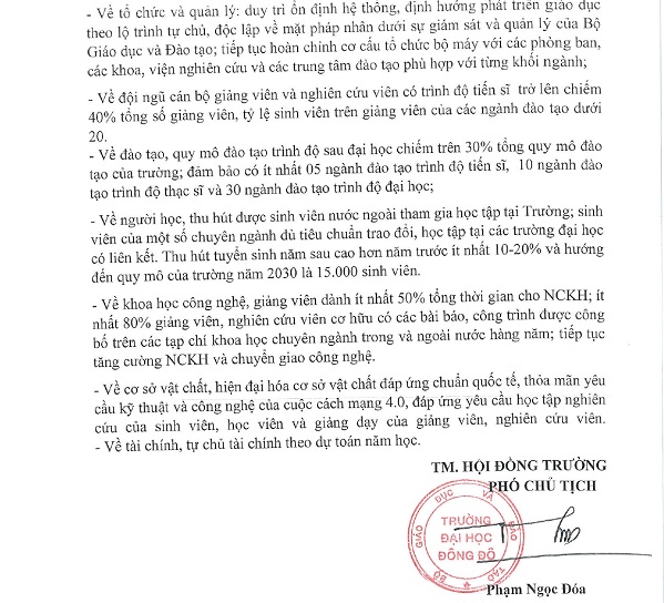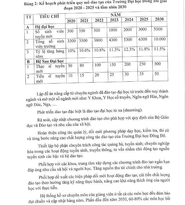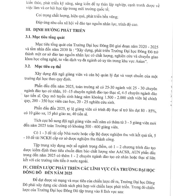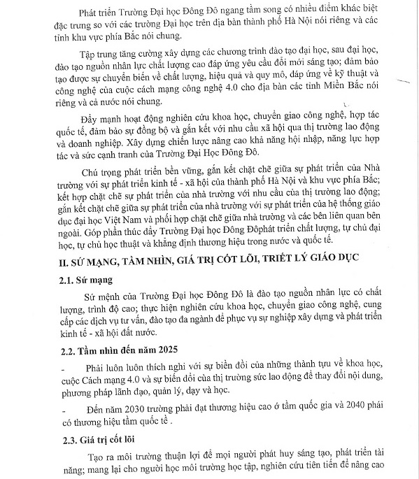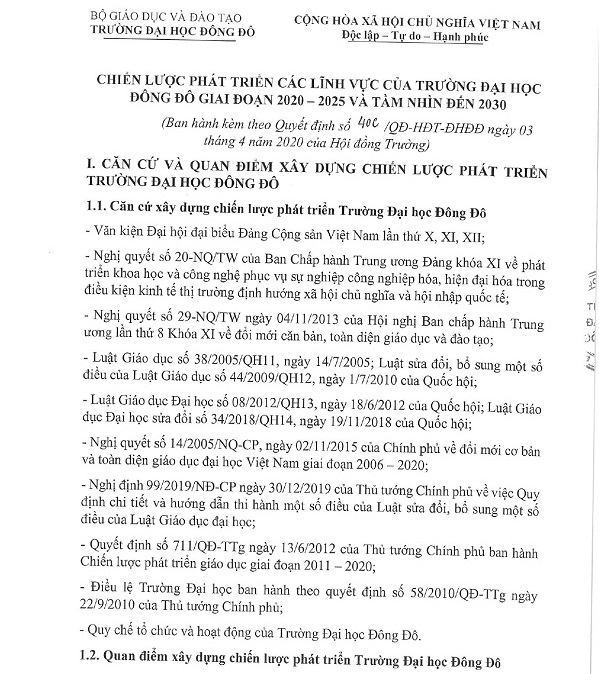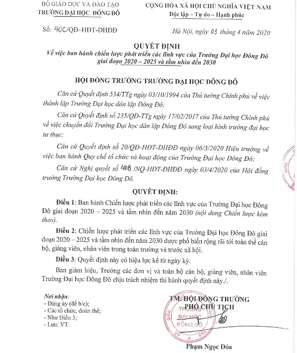 Quyết định ban hành Chiến lược phát triển các lĩnh vực của Trường Đại học Đông Đô giai đoạn 2020 - 2025 và tầm nhìn đến 2030