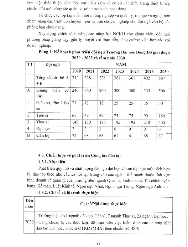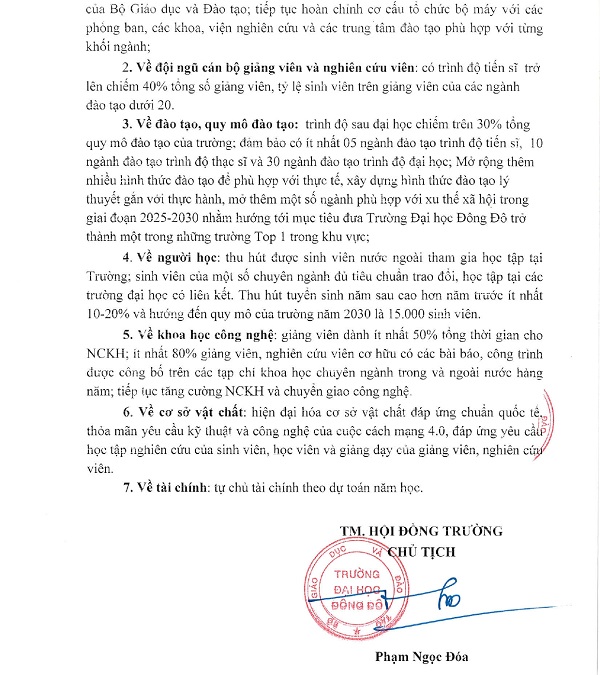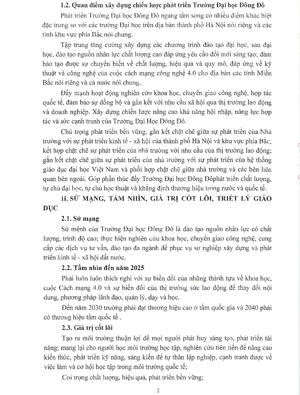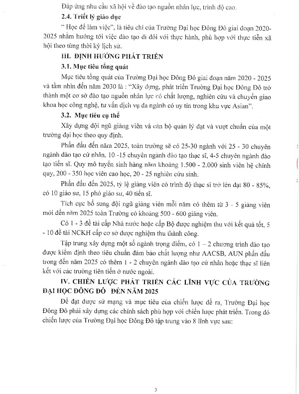 Quyết định về việc chiến lược phát triển các lĩnh vực của trường Đại học Đông Đô giai đoạn 2020-2025 và tầm nhìn đến năm 2030