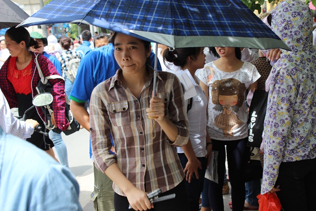 Phụ huynh và người thân các bạn sĩ tử đang đợi đón con em mình, chuẩn bị tiếp tục cho bài thi môn Lý chiều nay