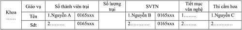 - Mỗi khoa cử 02 SVTN hỗ trợ BTC trong suốt Hội trại