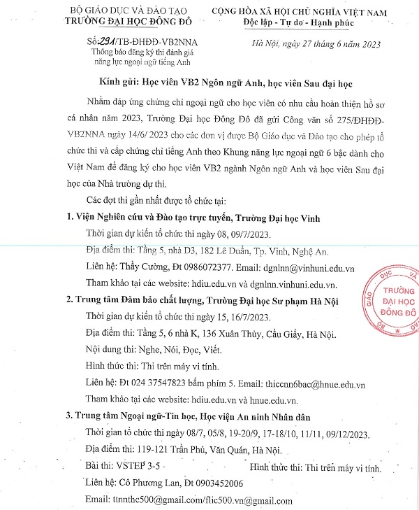 Thông báo đăng ký thi đánh giá năng lực ngoại ngữ tiếng Anh