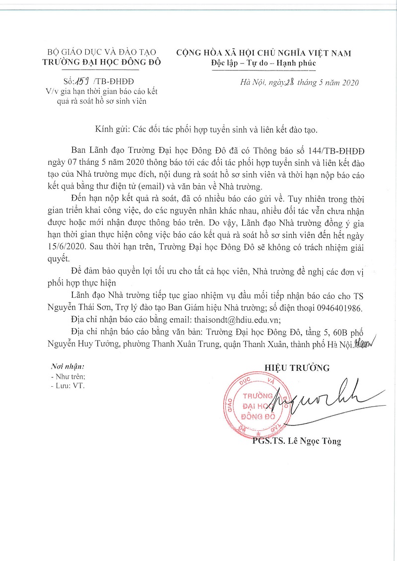 Thông báo gia hạn thời gian báo cáo kết quả rà soát hồ sơ sinh viên