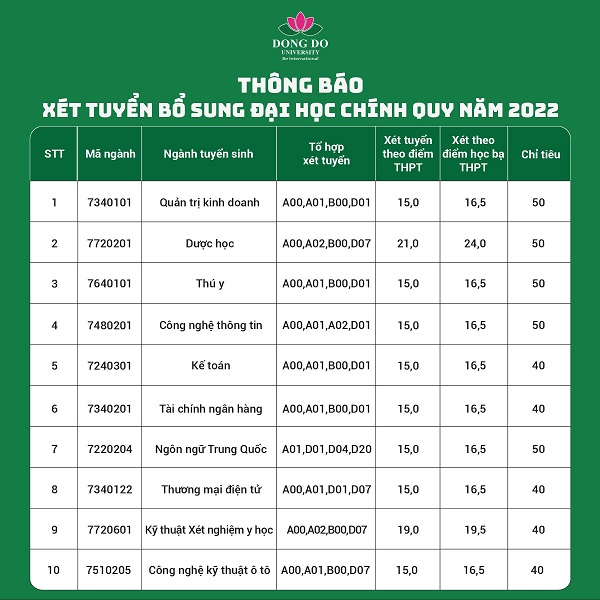 Thông báo tuyển sinh đại học chính quy đợt 2 - năm 2022