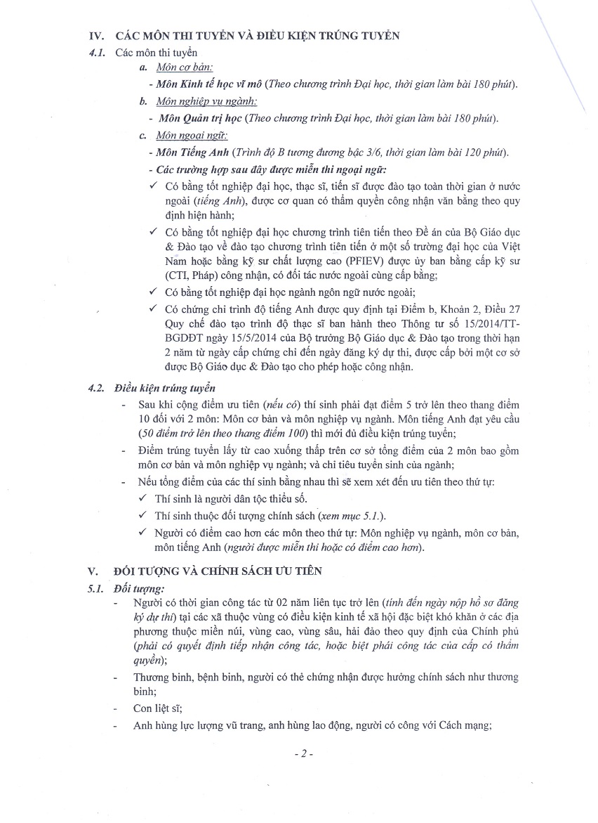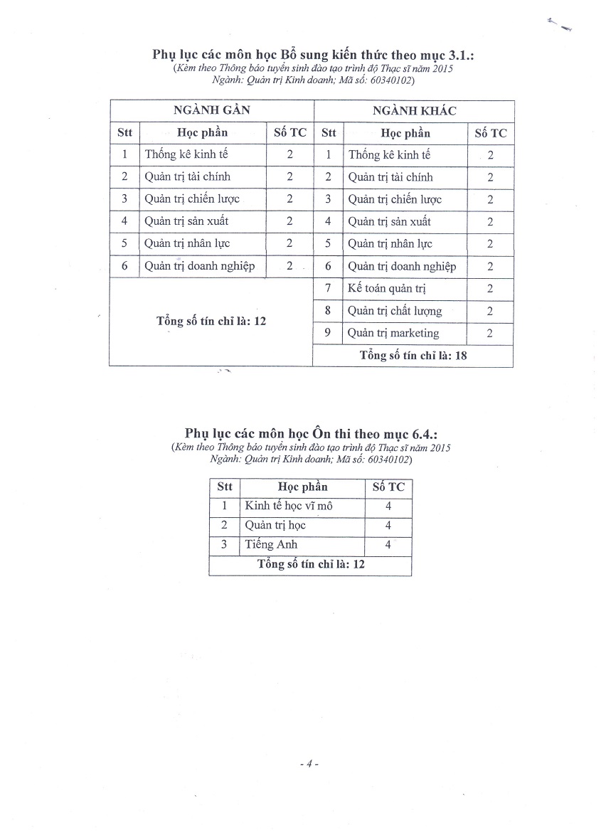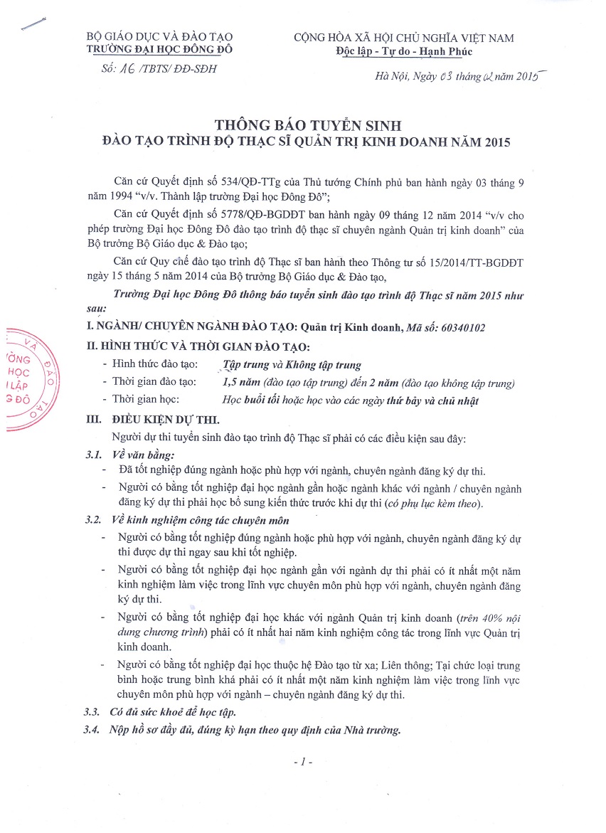 Thông báo tuyển sinh đào tạo trình độ thạc sỹ quản trị kinh doanh năm 2015