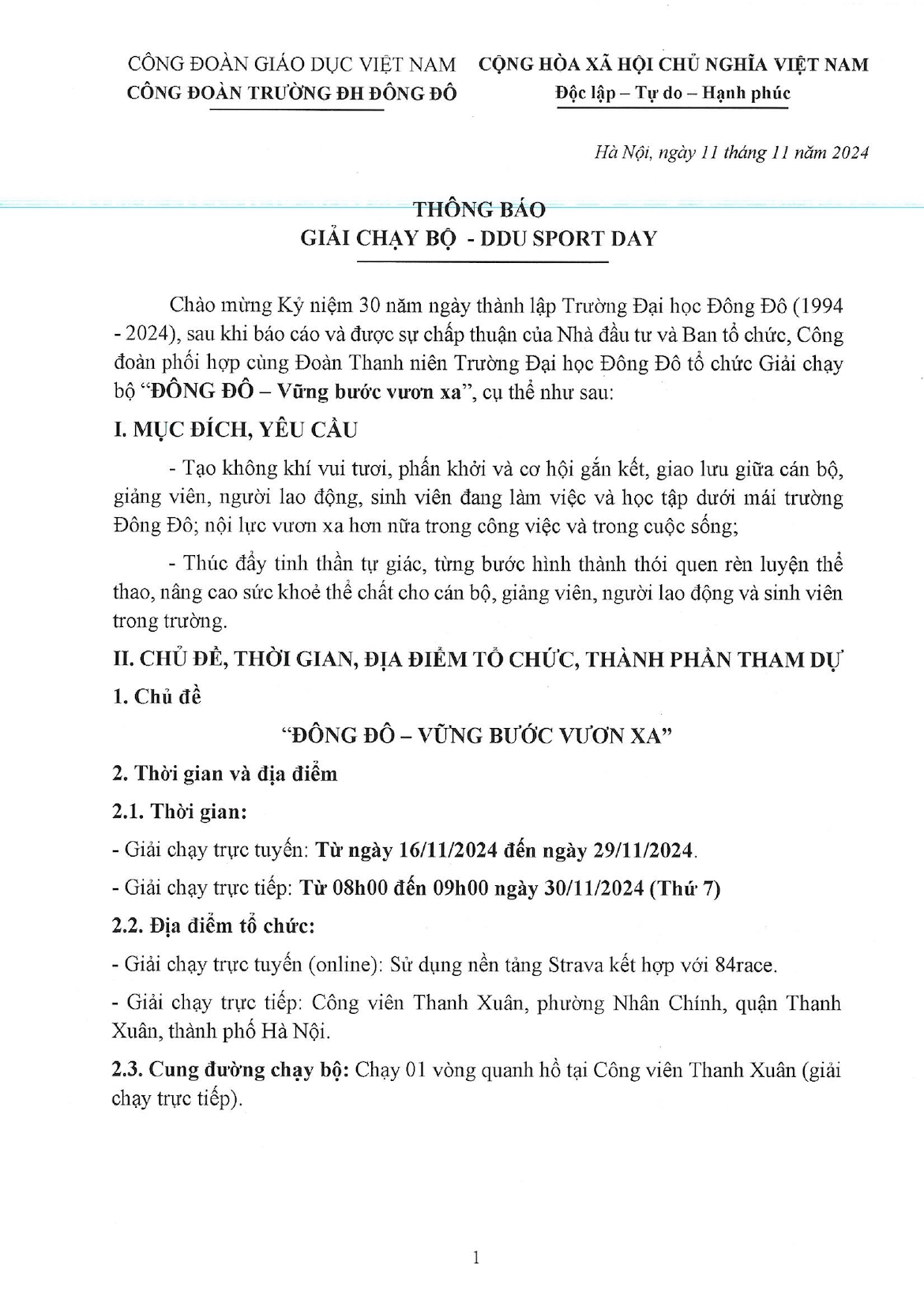 Tổ chức giải chạy bộ - DDU Sport Day chào mừng Kỷ niệm 30 năm Ngày thành lập Trường