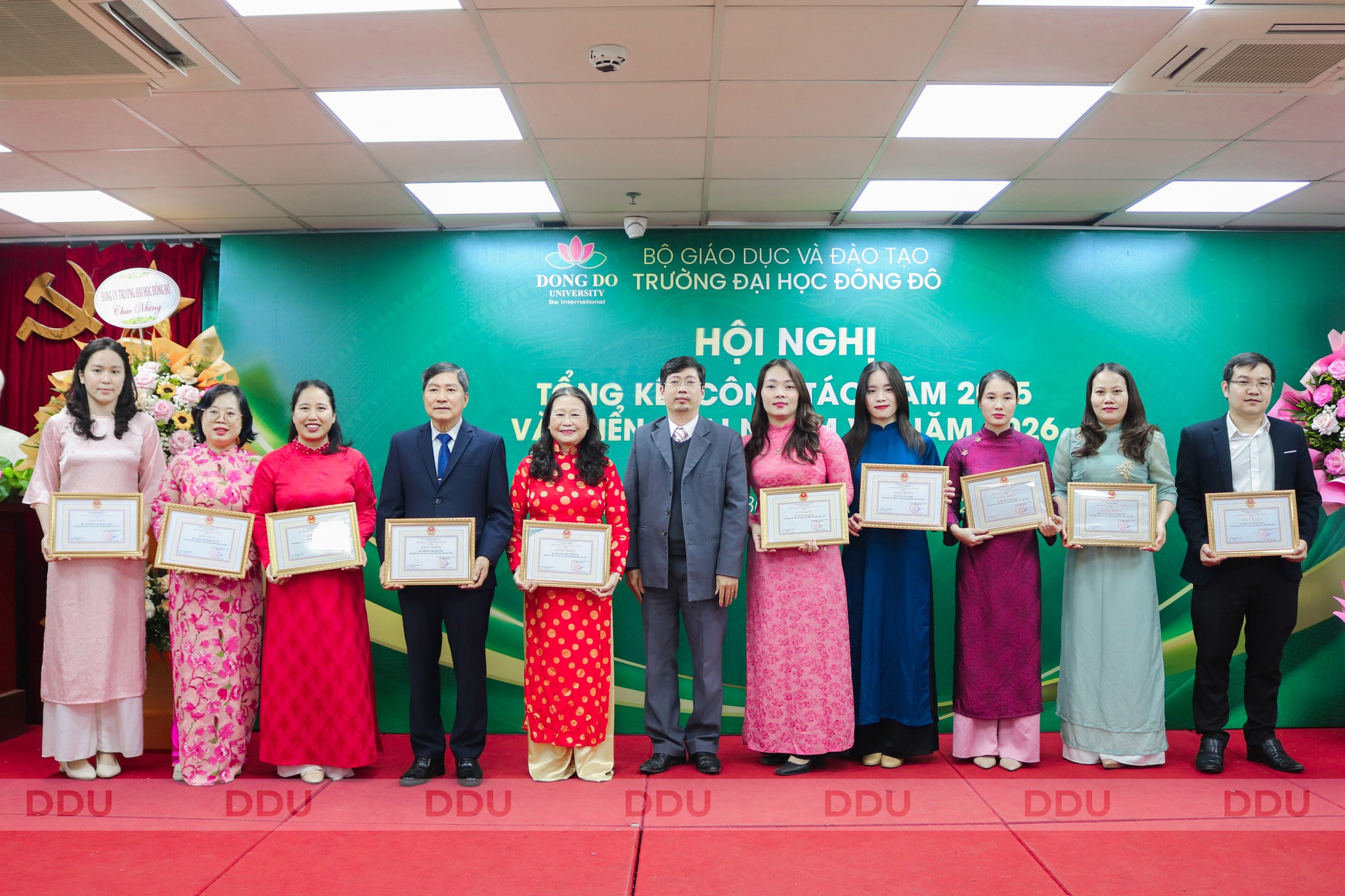 Vừa qua, Trường Đại học Đông Đô long trọng tổ chức Hội nghị Tổng kết công tác năm 2025 và triển khai phương hướng, nhiệm vụ năm 2026 với sự có mặt của Đảng ủy, Hội đồng Trường, Ban Giám Hiệu và toàn thể cán bộ, giảng viên, người lao động Nhà trường.