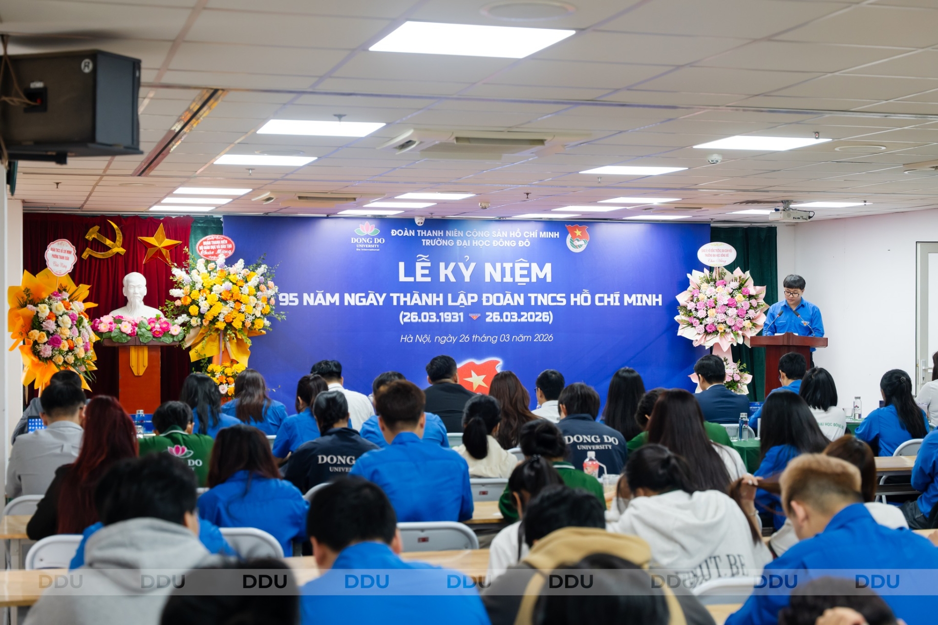 Hòa trong không khí thiêng liêng và đầy tự hào của những ngày tháng Ba lịch sử, sáng ngày 26/03/2026, Đoàn Thanh niên Trường Đại học Đông Đô đã long trọng tổ chức Lễ Kỷ niệm 95 năm Ngày thành lập Đoàn TNCS Hồ Chí Minh (26/03/1931 - 26/03/2026). Đây là dịp để các thế hệ đoàn viên, thanh niên ôn lại những truyền thống vẻ vang của tổ chức Đoàn, đồng thời khơi dậy niềm tự hào và trách nhiệm trong mỗi bạn trẻ đối với sự nghiệp xây dựng và bảo vệ Tổ quốc.