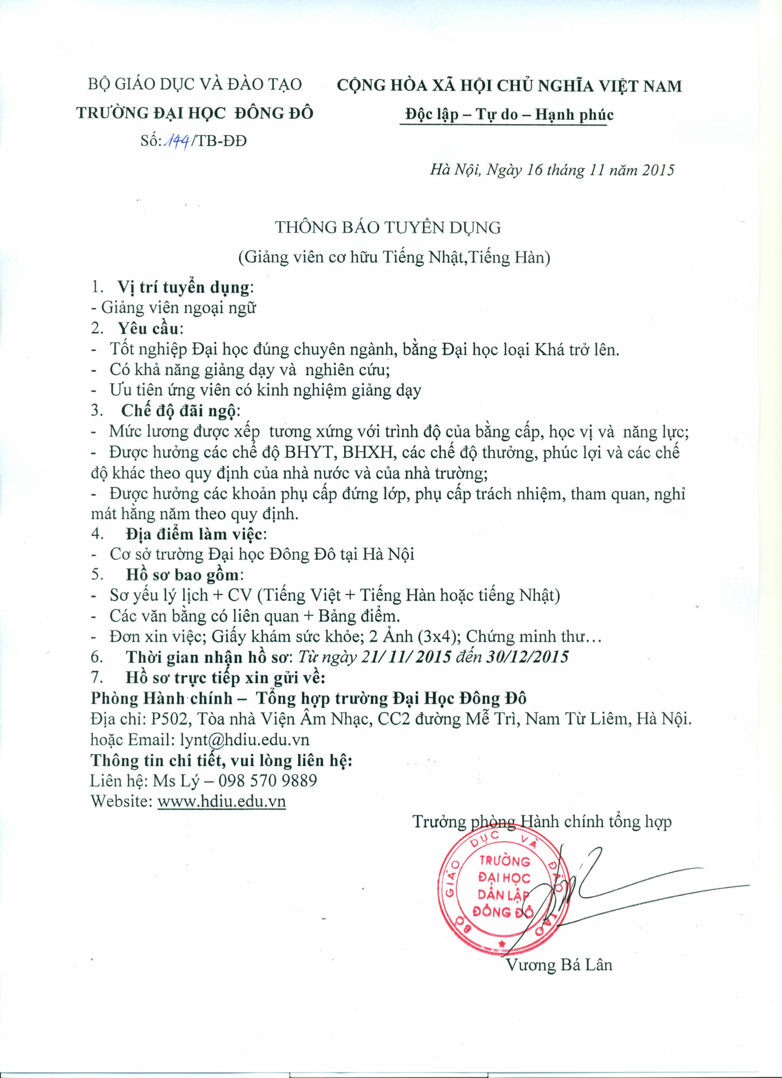 Tuyển dụng giảng viên tiếng Nhật và tiếng Hàn
