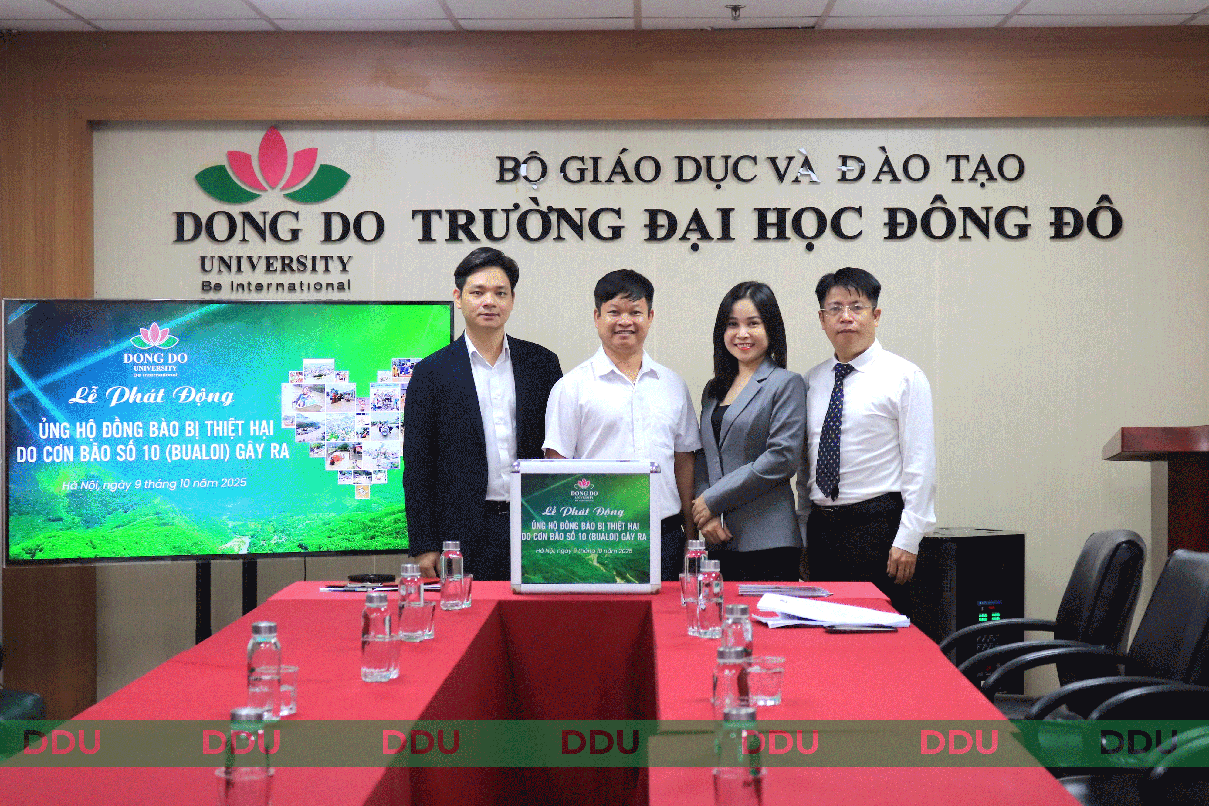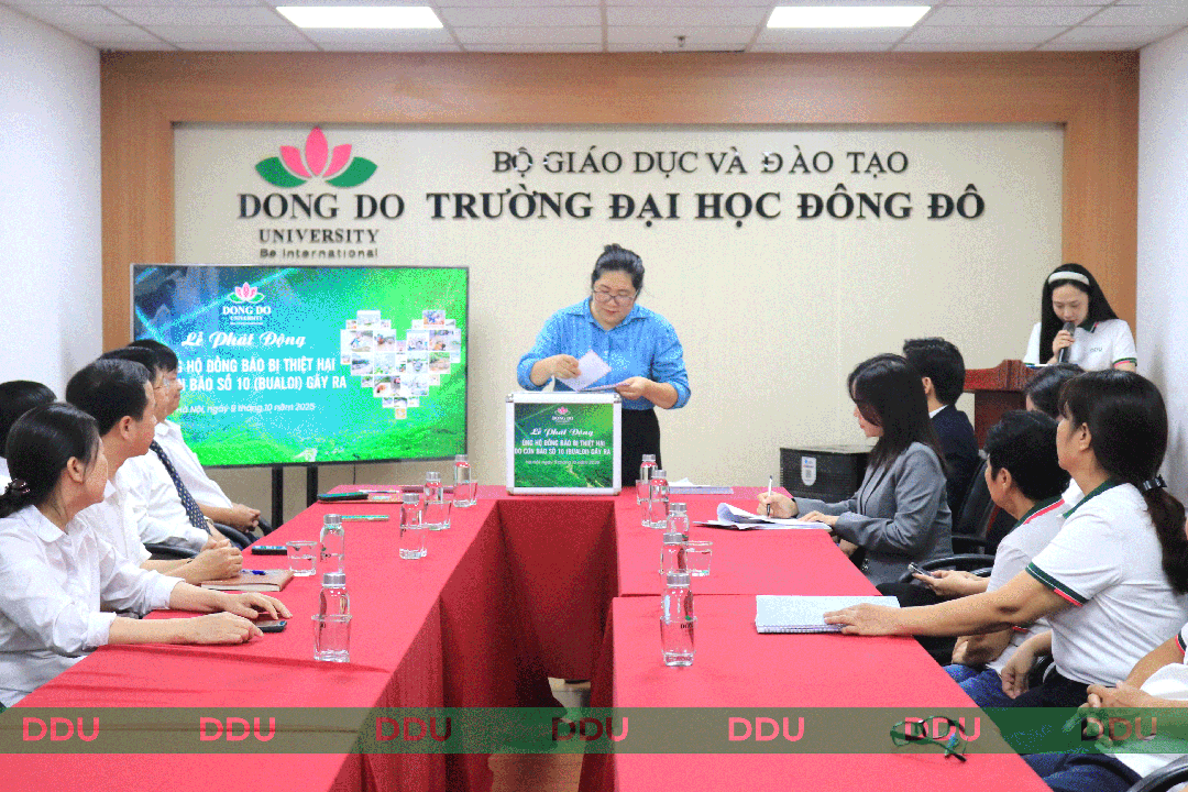 Với truyền thống tốt đẹp của dân tộc Việt Nam – “Lá lành đùm lá rách”, “một miếng khi đói bằng một gói khi no”, sáng ngày 09/10/2025, Trường Đại học Đông Đô đã long trọng tổ chức Lễ phát động quyên góp ủng hộ đồng bào Nghệ An bị thiệt hại nặng nề do cơn bão số 10 (Bualoi) gây ra. Buổi lễ diễn ra tại phòng họp 51-52, cơ sở 60B Nguyễn Huy Tưởng, Hà Nội, trong không khí thấm đẫm tinh thần sẻ chia, đoàn kết và giá trị nhân văn mà Đại học Đông Đô luôn trân trọng, gìn giữ và lan tỏa.