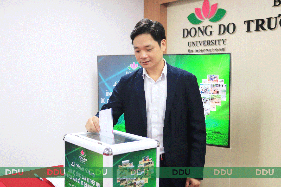 Ban Giám hiệu tham dự Lễ phát động Cùng với đó là sự tham gia của đại diện các phòng, ban, khoa, viện, trung tâm, cán bộ, giảng viên, nhân viên và đông đảo sinh viên toàn Trường. Sự có mặt đông đủ của tập thể lãnh đạo và cán bộ viên chức thể hiện rõ nét tinh thần đoàn kết và trách nhiệm cộng đồng, một trong những giá trị cốt lõi đã làm nên bản sắc riêng của Đại học Đông Đô trong suốt hơn ba thập kỷ phát triển. Lãnh Đạo Đảng ủy cùng Ban Giám hiệu cùng tập thể cán bộ, giảng viên, nhân viên Trường Đại học Đông Đô chia sẻ cùng đồng bào Nghệ An bị thiệt hại do bão số 10 (BUALOI) Trong những ngày đầu tháng 10, bão số 10 (Bualoi) đã gây mưa lớn, lũ quét và sạt lở nghiêm trọng tại nhiều tỉnh miền Trung, trong đó Nghệ An là một trong những địa phương chịu ảnh hưởng nặng nề nhất. Hàng trăm ngôi nhà bị tốc mái, hàng nghìn hecta hoa màu bị thiệt hại, cuộc sống của người dân gặp vô vàn khó khăn. Trước tình hình đó, Ban Lãnh đạo Trường Đại học Đông Đô đã nhanh chóng chỉ đạo phát động phong trào quyên góp ủng hộ đồng bào vùng lũ, kêu gọi toàn thể cán bộ, giảng viên, nhân viên và sinh viên chung tay góp sức, thể hiện tinh thần “Đông Đô vì cộng đồng – Gắn kết sẻ chia”. Phát biểu tại buổi lễ, TS. Nguyễn Đình Tân – Phó Hiệu trưởng phụ trách Trường chia sẻ: “Những mất mát của đồng bào Nghệ An là nỗi đau chung của dân tộc. Mỗi sự đóng góp, dù nhỏ bé, đều là nguồn động viên lớn lao gửi đến những người đang oằn mình trong khó khăn. Đông Đô không chỉ là nơi dạy tri thức, mà còn là nơi nuôi dưỡng lòng nhân ái, khơi dậy ý thức sống vì cộng đồng.” TS. Nguyễn Đình Tân – Phó Hiệu trưởng phụ trách Trường chia sẻ cùng đồng bào Nghệ An bị thiệt hại do bão số 10 (BUALOI) Tiếp lời lãnh đạo Nhà trường, TS. Nguyễn Anh Tuấn – Phó Hiệu trưởng nhấn mạnh: “Hoạt động quyên góp hôm nay không chỉ là sự giúp đỡ vật chất mà còn là bài học sâu sắc về lòng nhân ái. Chúng ta – những người thầy, người trò Đông Đô – hãy cùng nhau lan tỏa năng lượng tích cực, để tinh thần sẻ chia trở thành một phần trong văn hóa sống và học tập của mỗi sinh viên.” TS. Nguyễn Anh Tuấn – Phó Hiệu trưởng chia sẻ cùng đồng bào Nghệ An bị thiệt hại do bão số 10 (BUALOI) Đại diện cho sinh viên toàn Trường, bạn Dương Huệ Tường Vi – sinh viên khóa 30 ngành Ngôn ngữ Trung Quốc, phát biểu đầy xúc động: “Là sinh viên, chúng em luôn được thầy cô giáo dục về trách nhiệm xã hội và tình yêu thương con người. Khi nhìn thấy hình ảnh đồng bào Nghệ An oằn mình trong mưa lũ, chúng em không thể đứng ngoài. Dù chỉ là một phần nhỏ bé, nhưng chúng em tin rằng mỗi tấm lòng góp lại sẽ tạo thành dòng chảy yêu thương lớn lao, giúp sưởi ấm trái tim những người đang chịu mất mát.” Đại diện cho sinh viên toàn Trường, bạn Dương Huệ Tường Vi – sinh viên khóa 30 ngành Ngôn ngữ Trung Quốc, phát biểu đầy xúc động tại Lễ phát động Bạn Vi cũng chia sẻ thêm rằng phong trào quyên góp của Trường đã nhận được sự hưởng ứng mạnh mẽ của sinh viên các khoa, viện. Nhiều bạn đã chủ động kêu gọi, lan tỏa thông điệp nhân ái đến bạn bè, cộng đồng mạng, mong muốn “biến sự cảm thông thành hành động thiết thực.” Phát biểu của sinh viên đã tạo nên khoảnh khắc đặc biệt xúc động trong buổi lễ, thể hiện tinh thần đoàn kết giữa các thế hệ – nơi thầy và trò cùng chung một nhịp đập hướng về miền Trung thân yêu. Toàn bộ số tiền quyên góp sẽ được Nhà trường tổng hợp, công khai minh bạch và phối hợp cùng Ủy ban Mặt trận Tổ quốc Việt Nam tỉnh Nghệ An để trực tiếp trao đến tay người dân tại các vùng bị ảnh hưởng nặng nề nhất. Hoạt động được tổ chức với tinh thần thiết thực, đảm bảo mọi đóng góp của thầy và trò Trường Đại học Đông Đô đều đến đúng nơi, đúng người, mang lại giá trị thật sự cho cộng đồng. Trải qua hơn 31 năm xây dựng và phát triển, Trường Đại học Đông Đô không chỉ khẳng định uy tín trong lĩnh vực giáo dục – đào tạo, mà còn được biết đến là ngôi trường luôn đặt giá trị con người, lòng nhân ái và tinh thần cống hiến lên hàng đầu. Các hoạt động thiện nguyện, đền ơn đáp nghĩa, hiến máu nhân đạo, hỗ trợ vùng khó khăn, xây nhà tình nghĩa, trao học bổng vì cộng đồng… đã trở thành truyền thống tốt đẹp được duy trì đều đặn, góp phần xây dựng hình ảnh sinh viên Đông Đô năng động, nghĩa tình và trách nhiệm. Với phương châm “Giáo dục không chỉ là tri thức, mà còn là nuôi dưỡng lòng nhân ái”, mỗi hoạt động cộng đồng của Nhà trường đều hướng đến mục tiêu bồi đắp nhân cách, hun đúc tình yêu thương con người và tinh thần hướng thiện trong thế hệ trẻ. Khép lại buổi lễ, không khí xúc động vẫn đọng lại trong ánh mắt, nụ cười