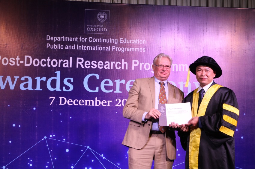Nhận bằng tốt nghiệp từ GS. TS. Hudson, GĐ Chương trình Postdoc, trường Đại học Oxford, Vương Quốc Anh