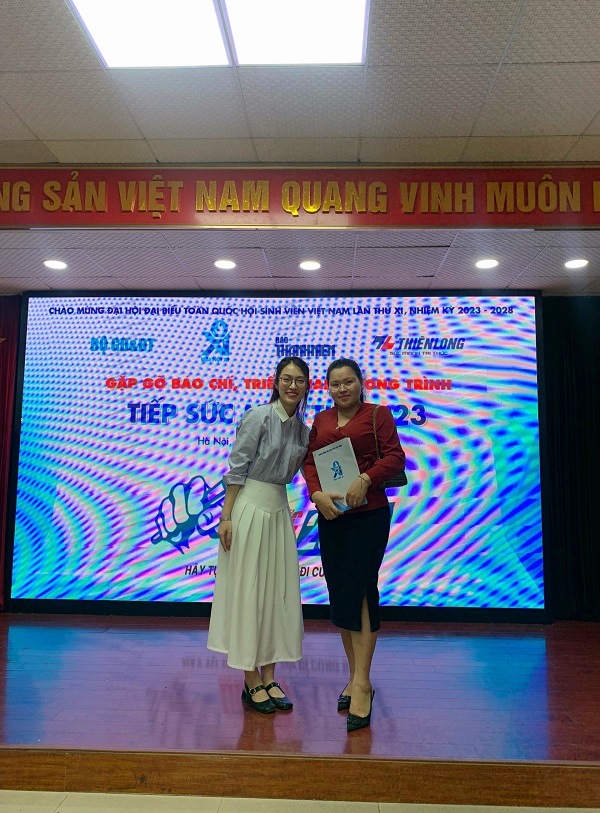 Đồng chí Ngô Thị Thảo Linh và MC Trần Khánh Vy chụp ảnh lưu niệm