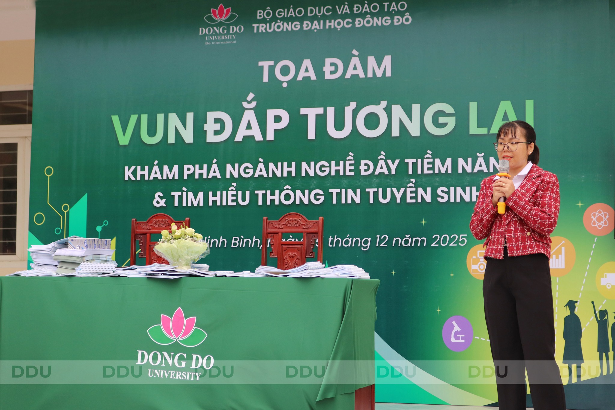 Ngày 25/12/2025, Trường Đại học Đông Đô phối hợp cùng Trường THPT Nguyễn Hữu Tiến tổ chức buổi tọa đàm với chủ đề “Vun đắp tương lai: Khám phá ngành nghề đầy tiềm năng và tìm hiểu thông tin tuyển sinh”. Chương trình đã thu hút sự tham gia của gần 1.000 học sinh, mở ra nhiều góc nhìn mới mẻ về thị trường lao động trong kỷ nguyên công nghiệp 5.0.