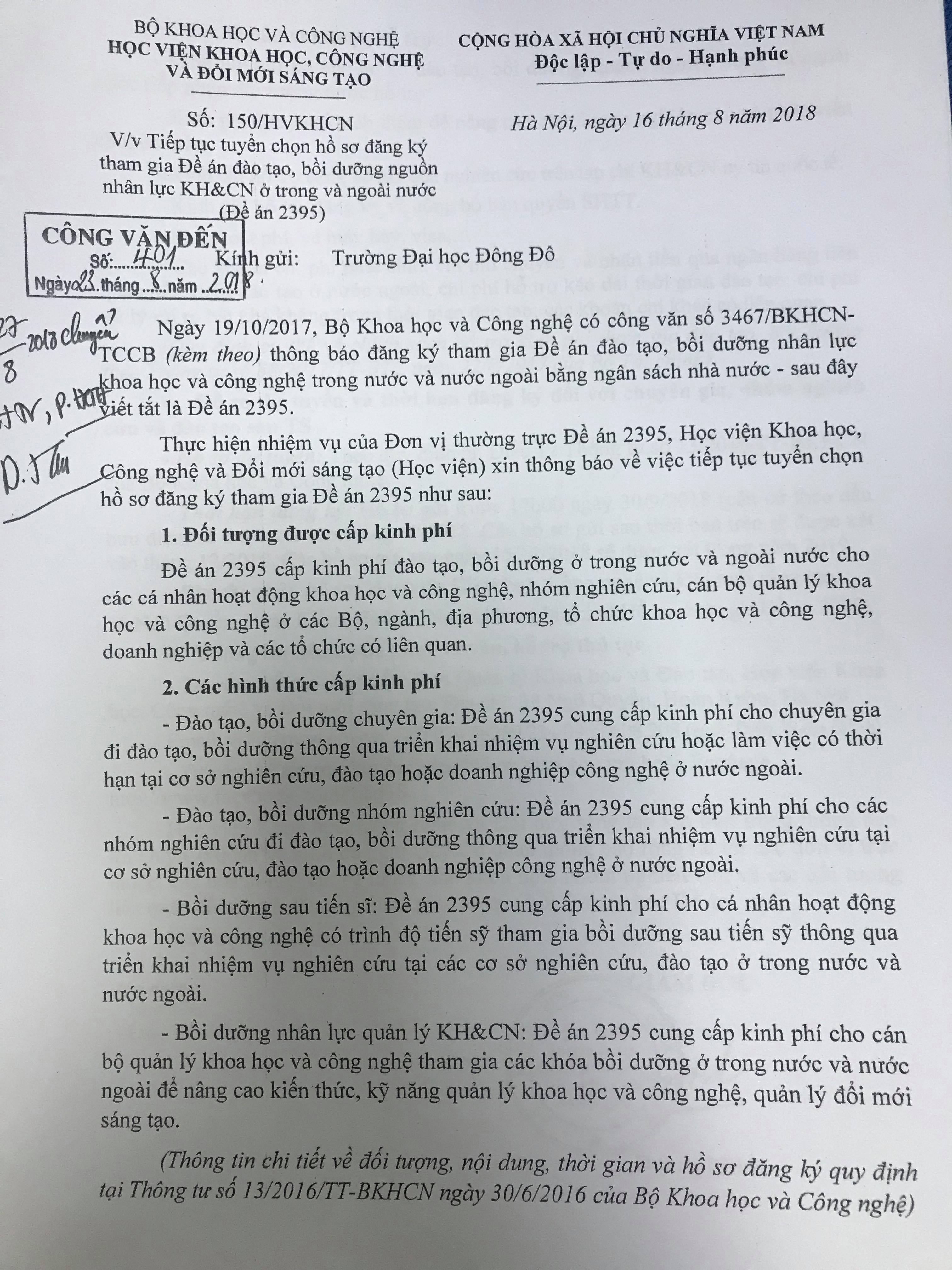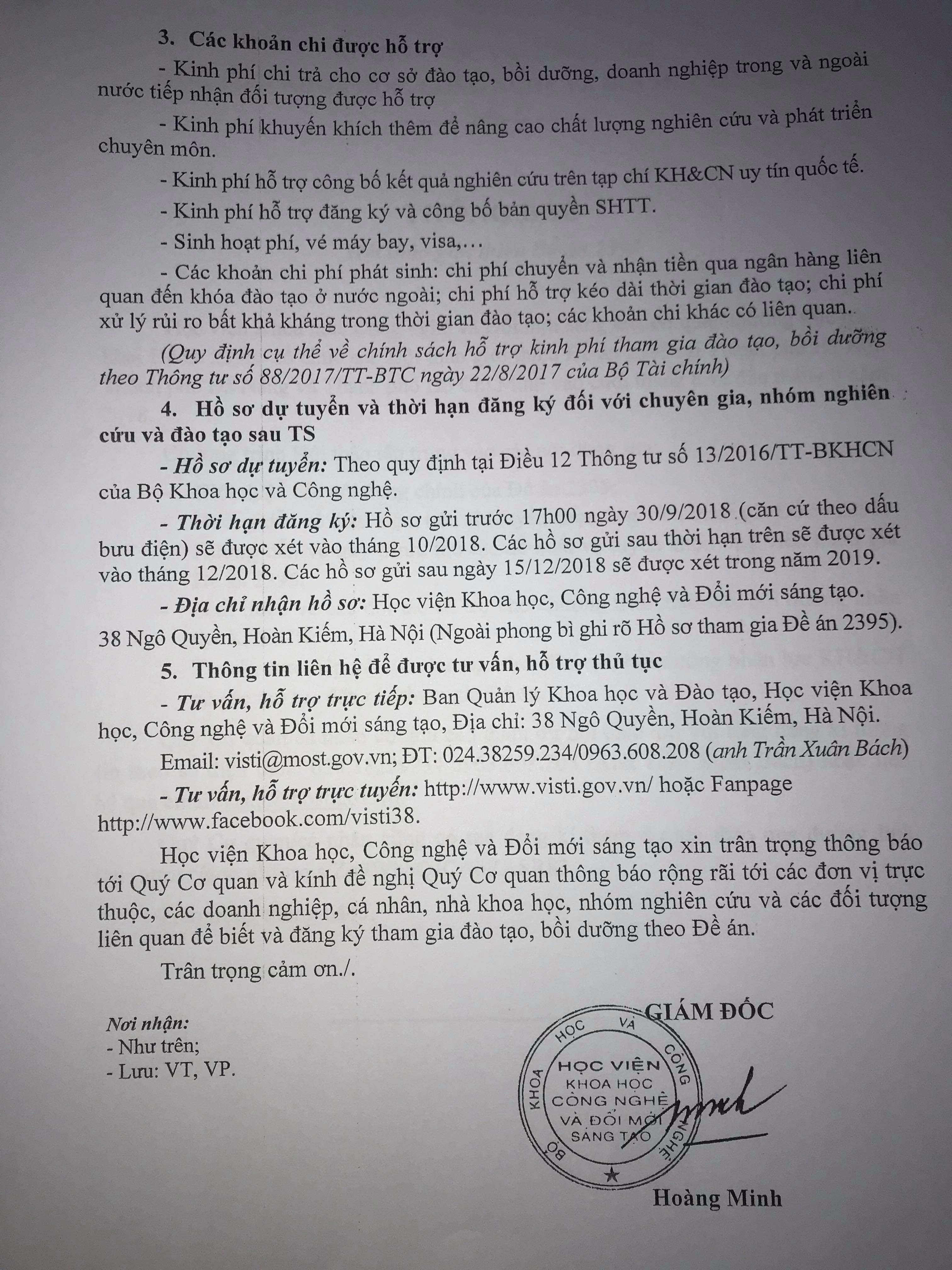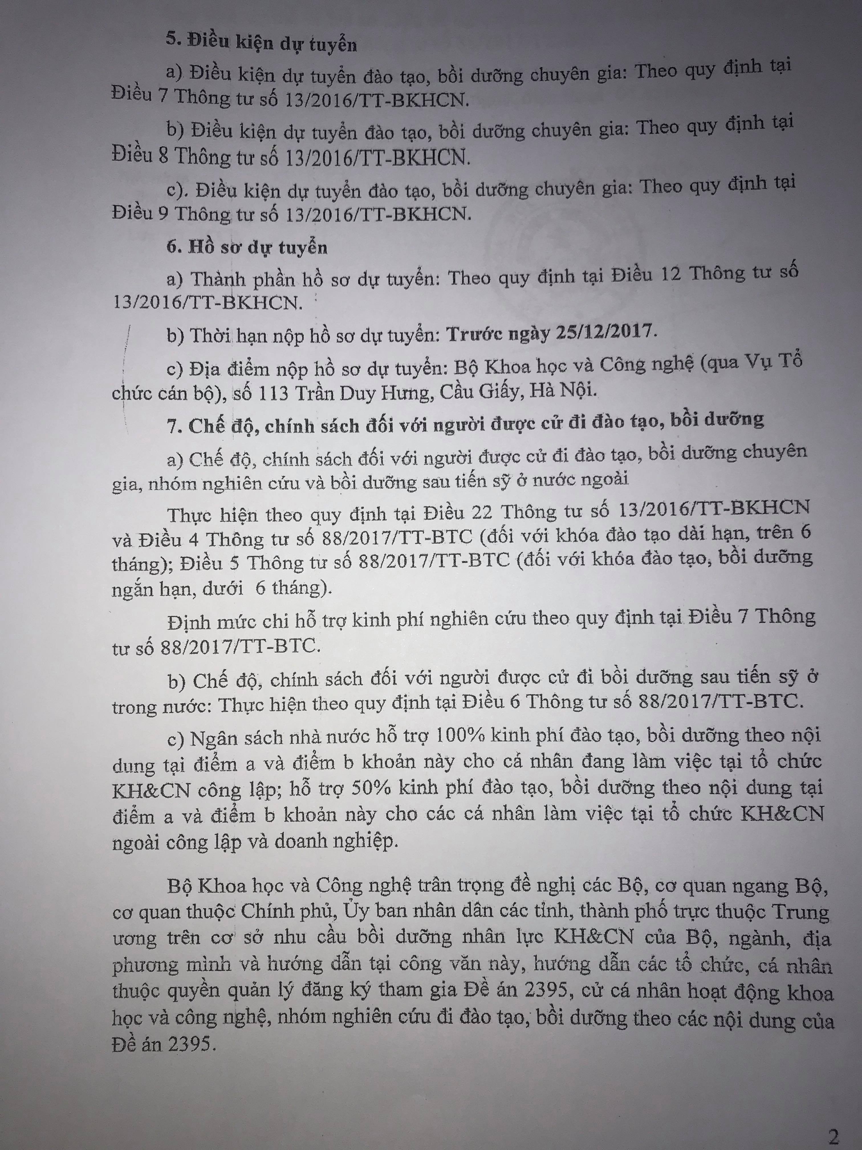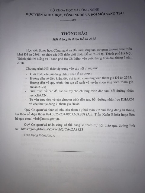 tuyển chọn hồ sơ đăng kí tham gia đề án đào tạo, bồi dưỡng nguồn nhân lực KH&CN ở trong và ngoài nước